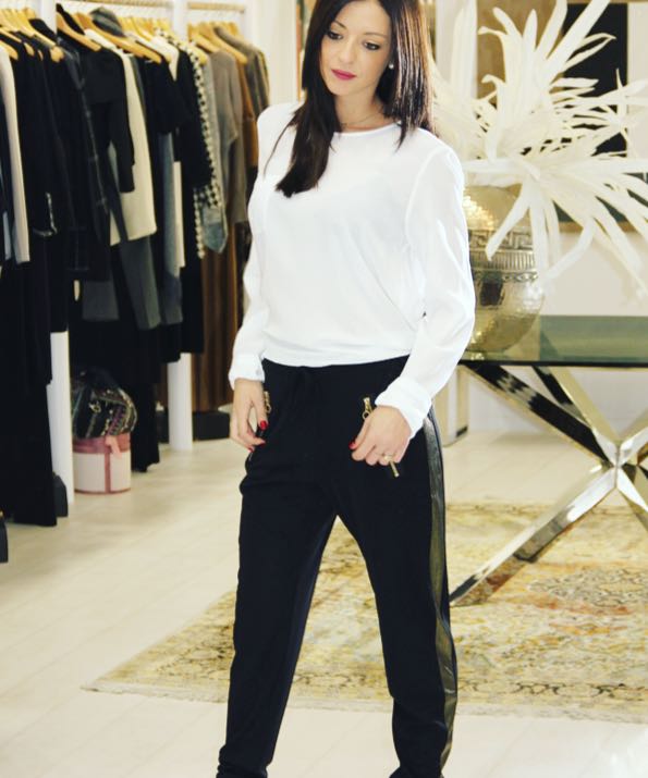Os mostramos este precioso pantalón chandal de total actualidad en color negro con franja dorada !!