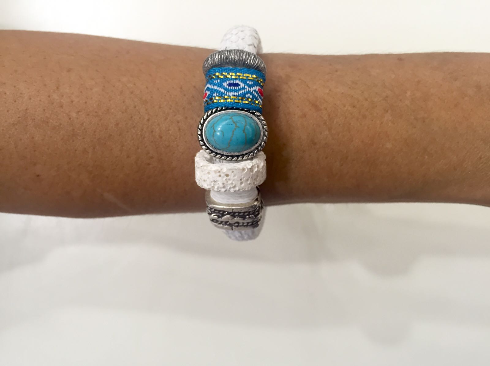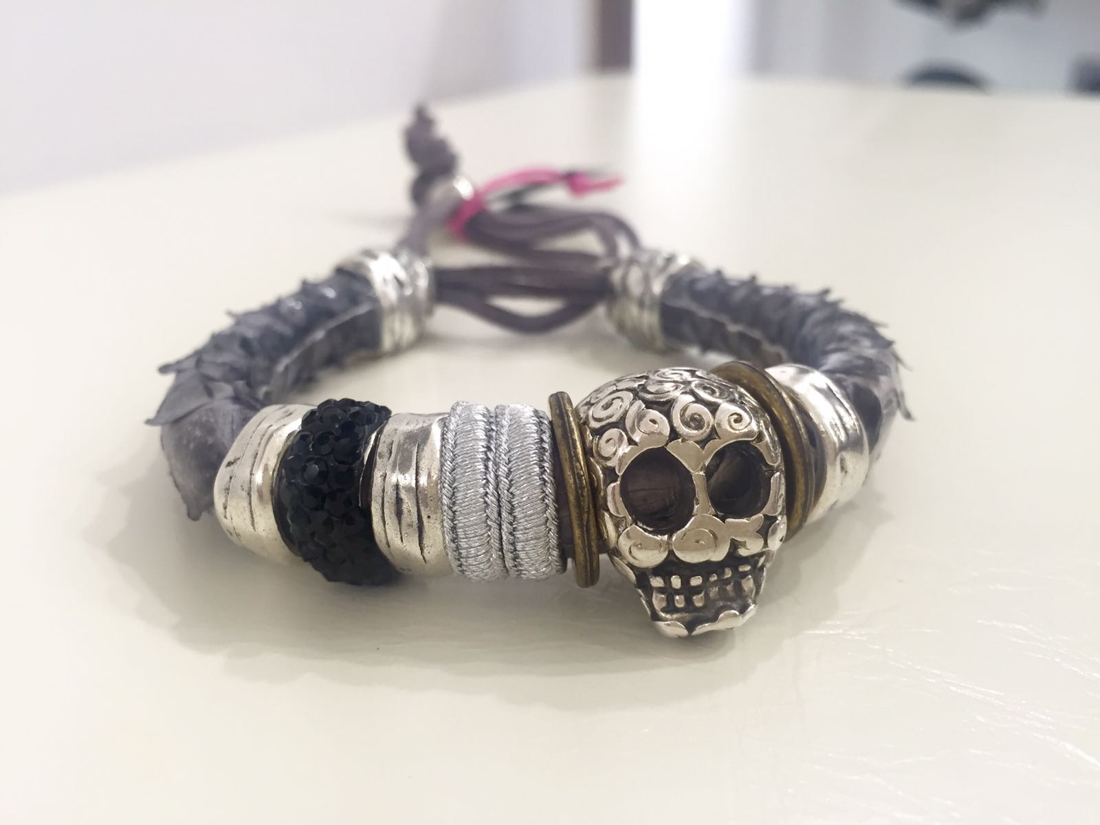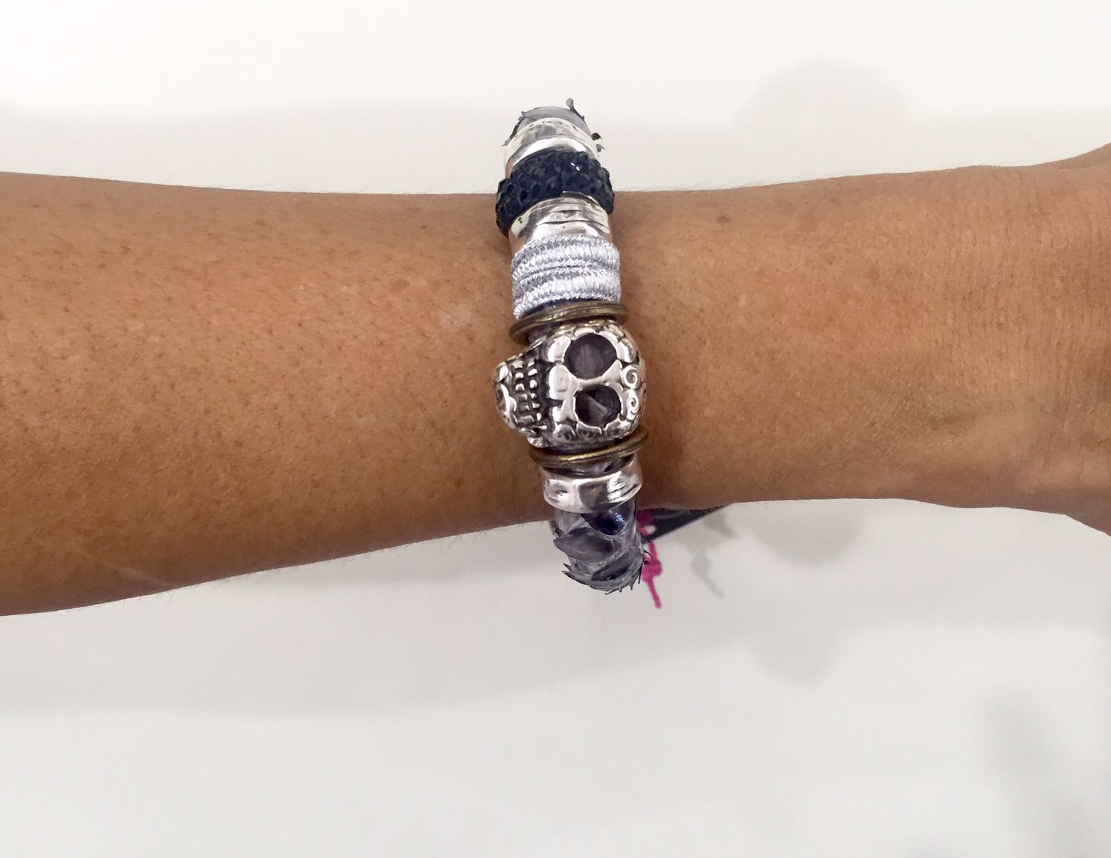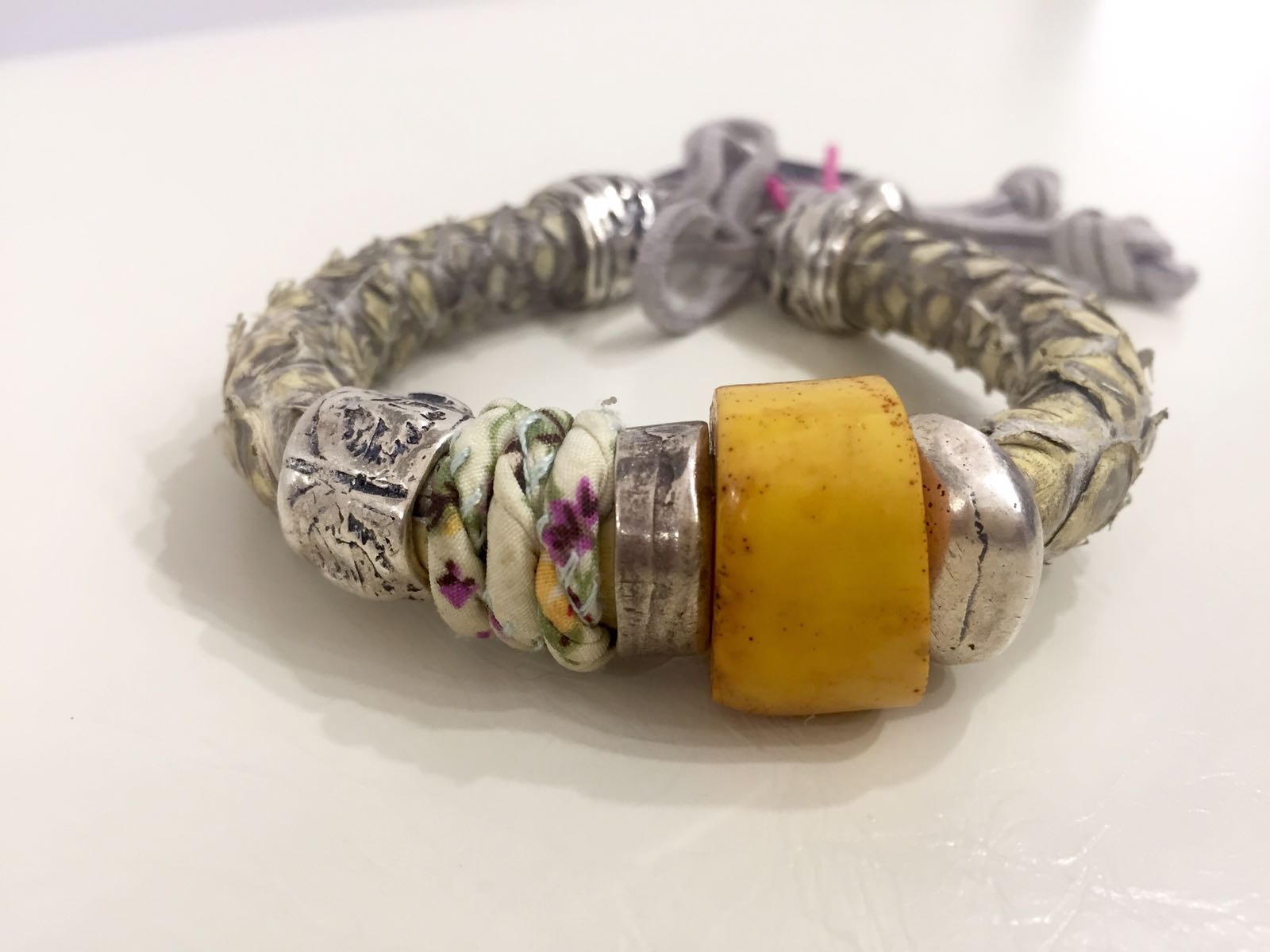 Pulseras en piel de pitón, con detalles como piezas en zamak bañadas en oro y plata, piedras exóticas, cerámicas coloreadas, hilos encerados y suaves tejidos de seda…